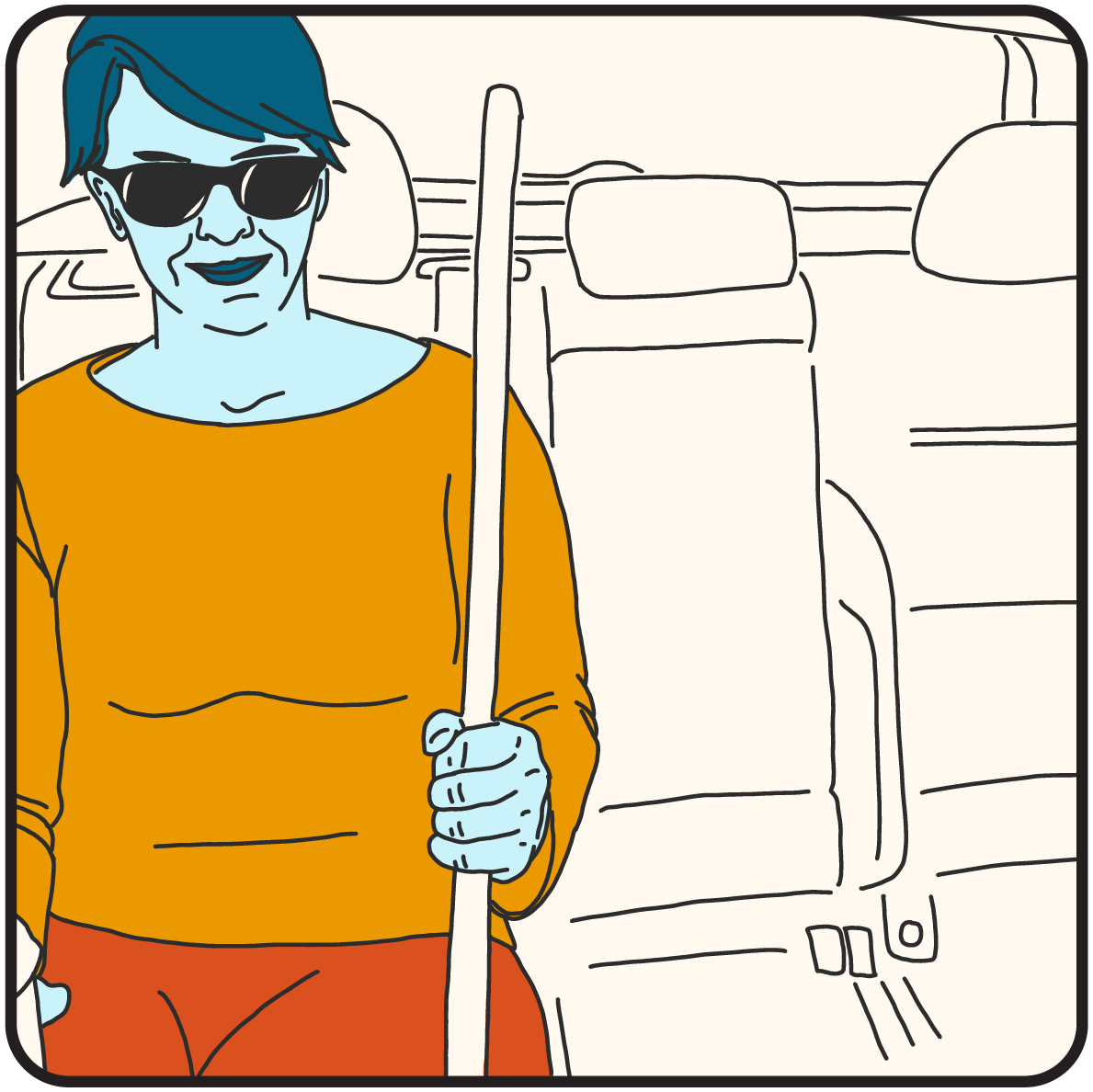 Visually impaired people cannot operate vehicles independently and have to rely on many varied sources of transportation, which are not suited to their needs and are unpredictable and limited use. Shared autonomy rideshares will be the best way mobility solution, but will not have any drivers to help users. What happens when there is no human driver?